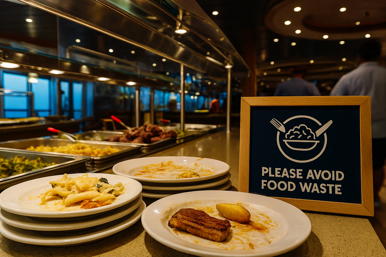 Cruise ships are designed to dazzle guests with abundance. That means kitchens often prepare more than necessary, and guests sometimes take more than they can finish.